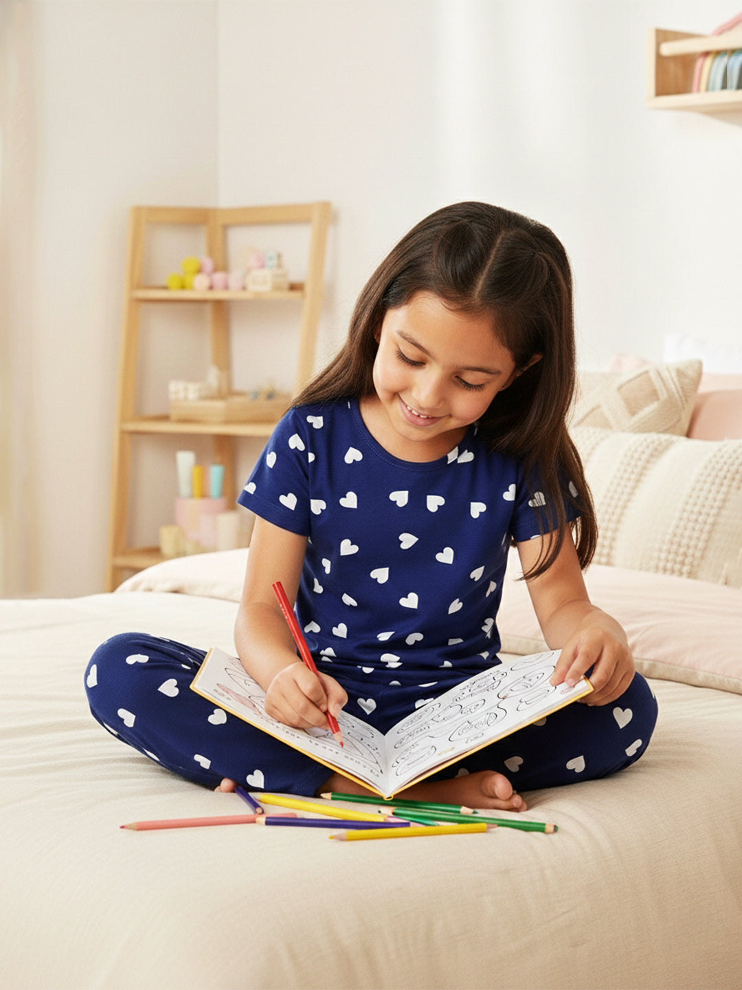 Made for cozy nights and relaxed mornings, the Mackly Girls Top & Pyjama Set is crafted from 100% pure cotton for natural softness and breathability. The lightweight fabric feels gentle on delicate skin and allows airflow throughout the night, helping her stay comfortable and cool. Designed with a relaxed fit and flexible waistband, this sleepwear set is perfect for bedtime, lounging, and everyday comfort at home.