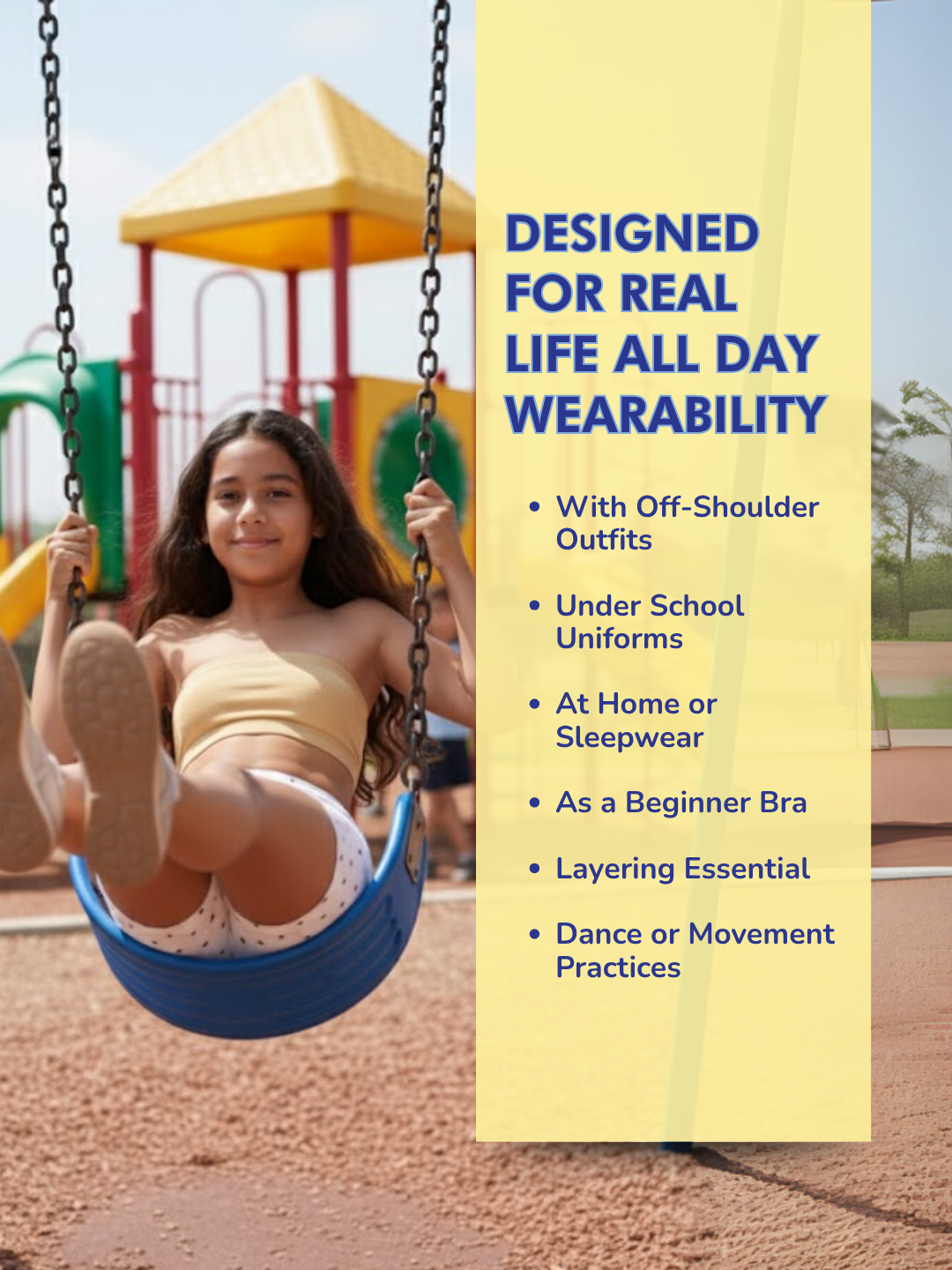 • Soft and Breathable Fabric: Crafted from soft, breathable cotton, these bras ensure all-day comfort for young girls. The stretchable material adapts to growth, making it ideal for active lifestyles.