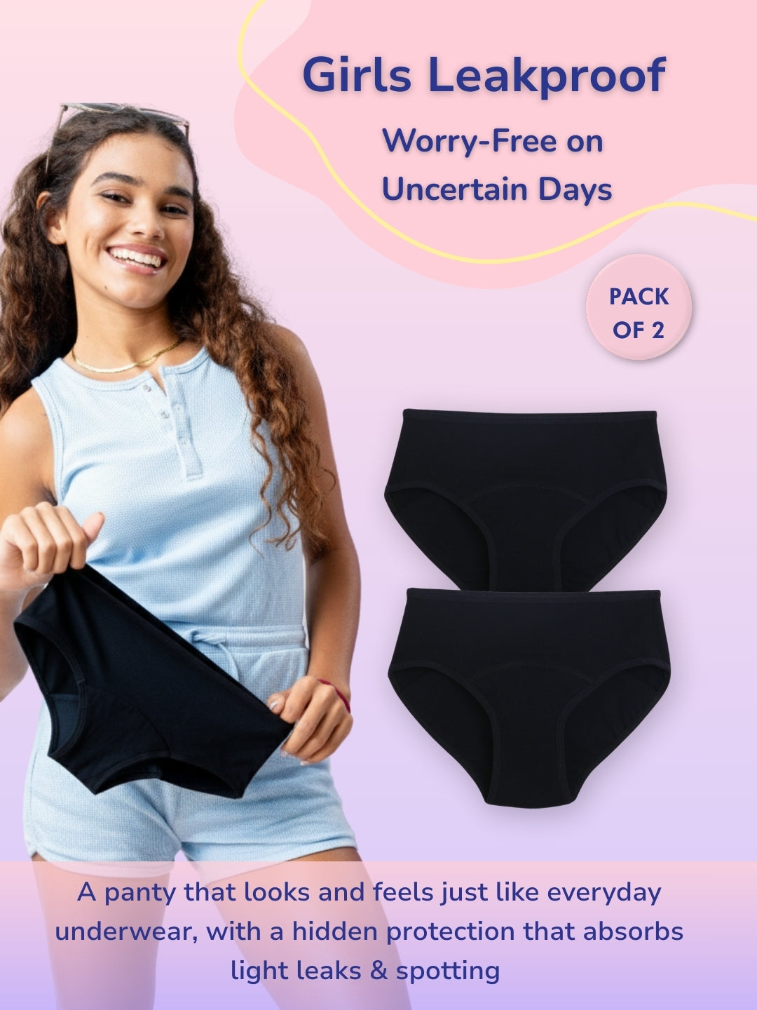 • Package Includes: 2 Leak Proof Panty
