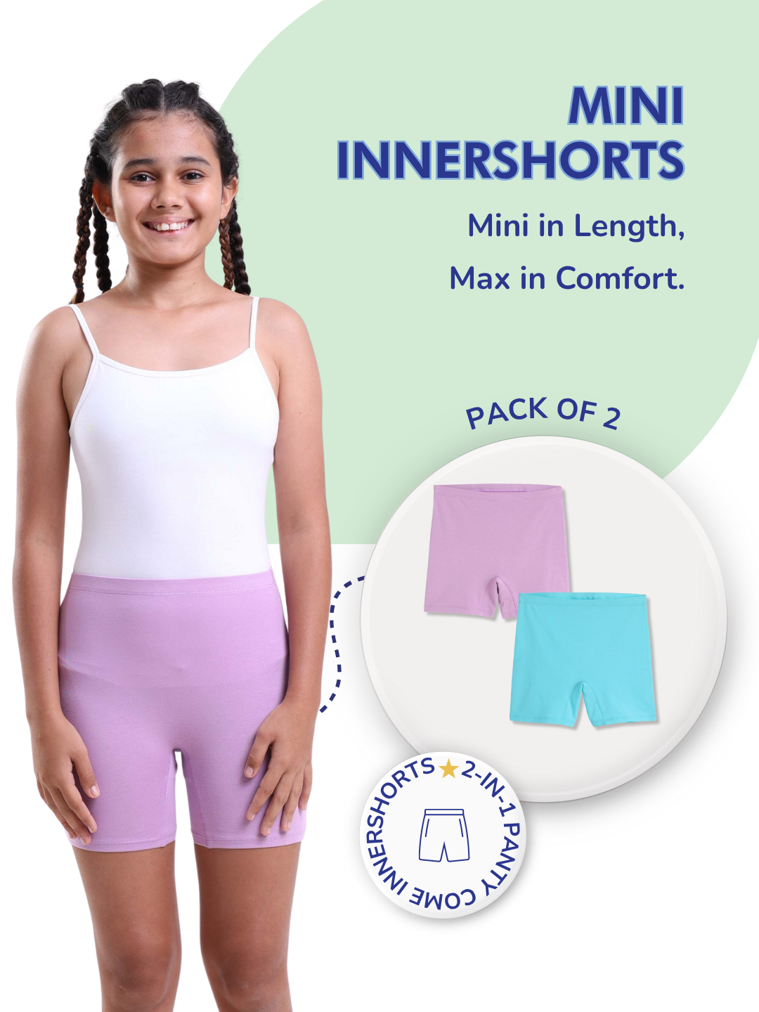 Introducing Mackly’s Girls Mini Innershorts – the same trusted comfort and 2-in-1 functionality as our classic innershorts, now with a shorter leg length for a lighter, breezier feel. Designed to be worn as both panty and shorts, they’re perfect under school uniforms, skirts, or for lounging at home.