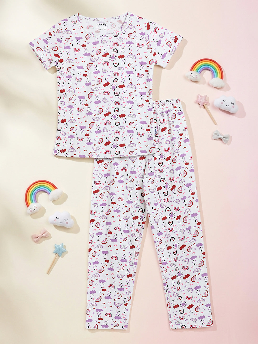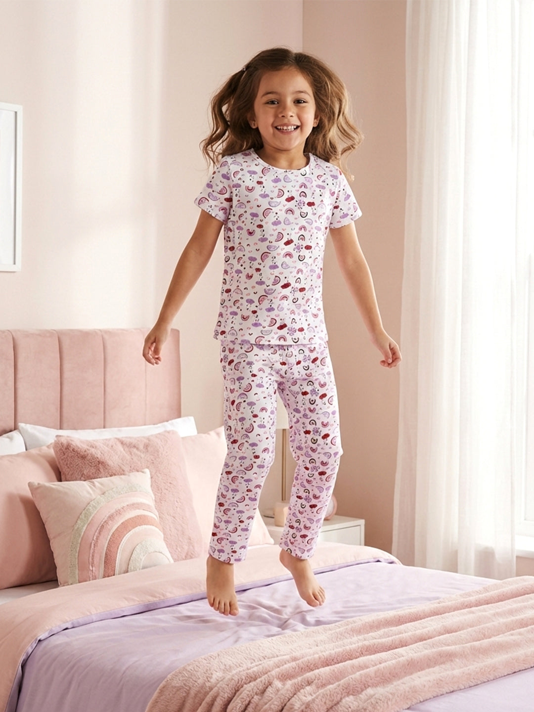 Made for cozy nights and relaxed mornings, the Mackly Girls Top & Pyjama Set is crafted from 100% pure cotton for natural softness and breathability. The lightweight fabric feels gentle on delicate skin and allows airflow throughout the night, helping her stay comfortable and cool. Designed with a relaxed fit and flexible waistband, this sleepwear set is perfect for bedtime, lounging, and everyday comfort at home.