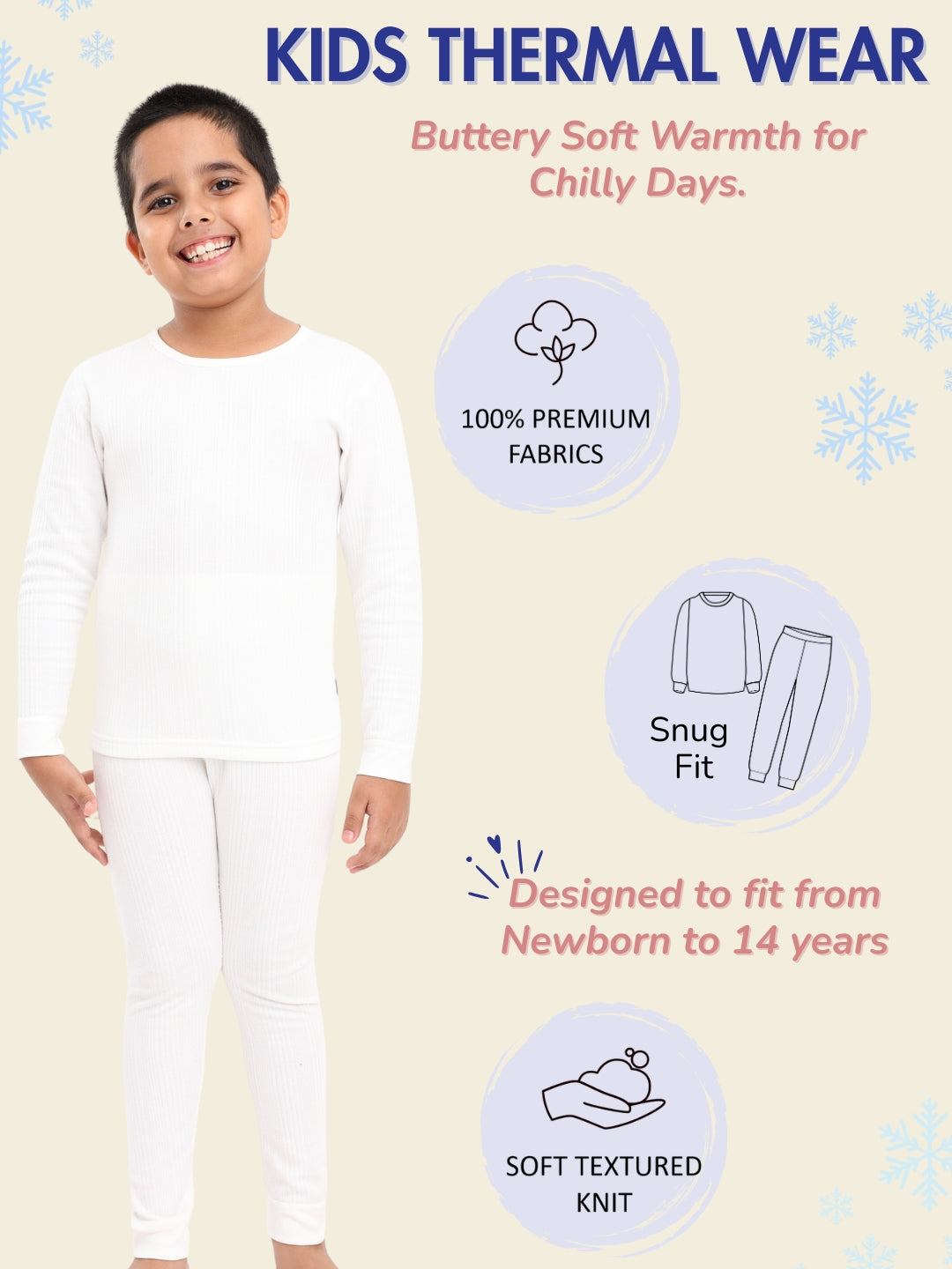 Off white solid thermal top, has a round neck and long sleeves Off white solid regular-fit mid-rise thermal bottom, has an elasticated waistband with slip-on closure, cuffed hems
